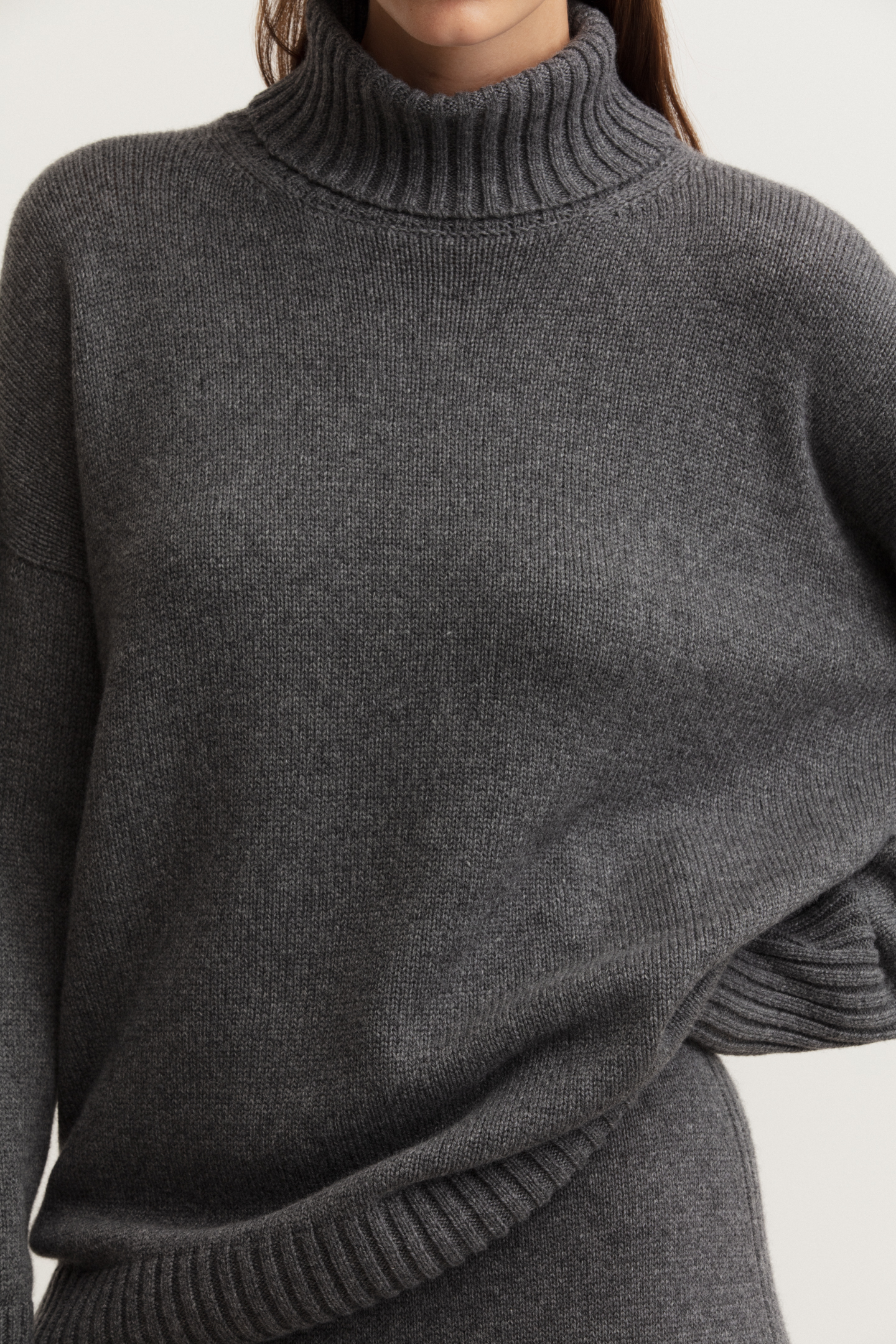 Our exclusive stonewashed colour creations are manufactured in collaboration with a family business in Italy. A unique washing and dyeing process makes the colours appear more subtle and deeper, the knit more dimensional and the structures more sublime.